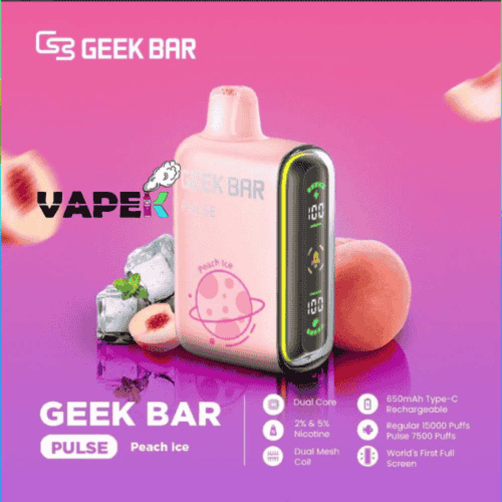 سحبة جيك بار 15000 سيجارة إلكترونية بنكهة خوخ آيس - Geek Bar Pulse 15K PEACH ICE