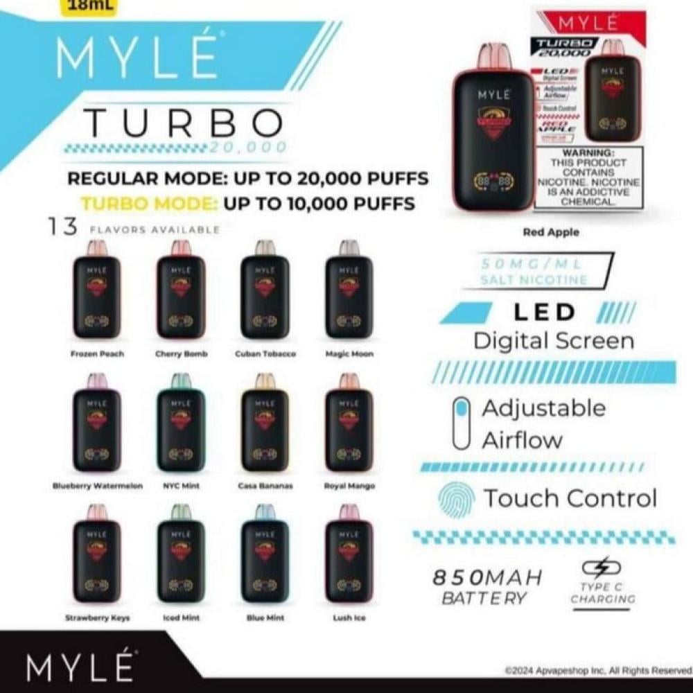 استمتع بتجربة تدخين إلكتروني لا تُضاهى مع Myle Turbo – القوة والأناقة في جهاز واحد! 🥭⚡