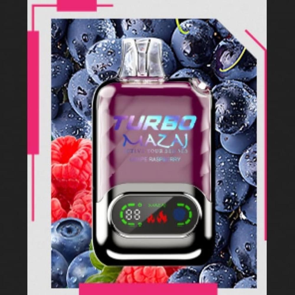 استعد لتجربة فيب فريدة مع Mazaj Turbo 15000 Puffs بنكـهة العنب والتوت المركزة. يجمع هذا الجهاز بين الأداء العالي والتصميم العصري، ليمنحك حتى 15,000 سحبة بنكهة غنية. مزود ببطارية قابلة للشحن بسعة 850mAh، وسعة سائل 22 مل، إضافة إلى شاشة ذكية تعرض نسبة البطارية والنكهة، لتحصل على تحكم كامل وسحب ناعم ودقيق.