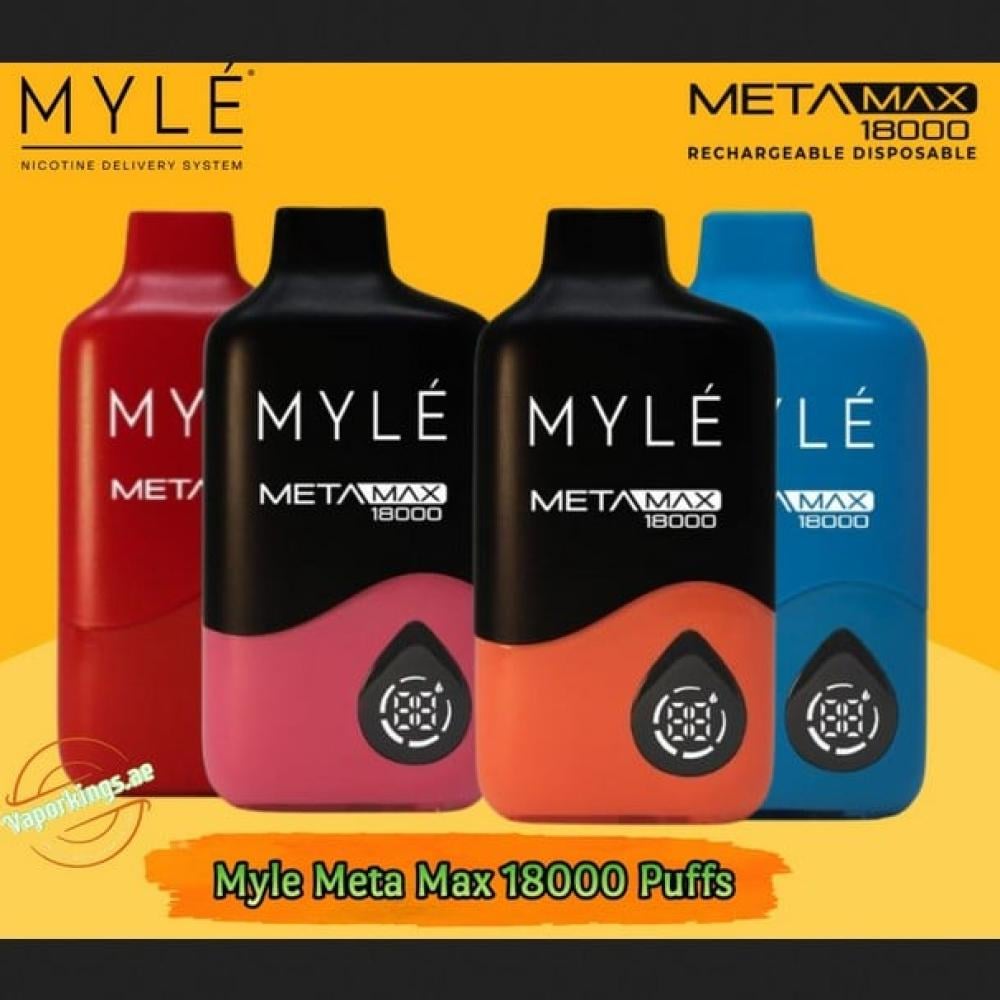 استمتع بتجربة فيب فريدة مع مايلي ميتا ماكس 18000 نفخة تروبيكال فروت. تصميم أنيق، أداء قوي، 18 مل، 18000 نفخة، ملف شبكي مزدوج لبخار ناعم، شاشة LCD، بطارية 850mAh، شحن Type-C، ومقاومة للتسرب. رفيقك المثالي للفيب!